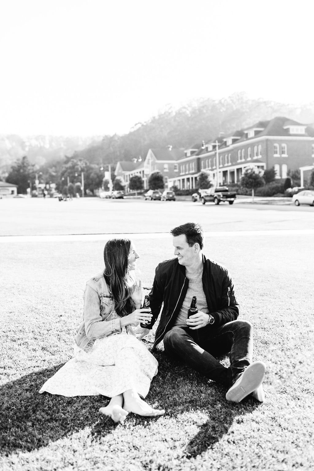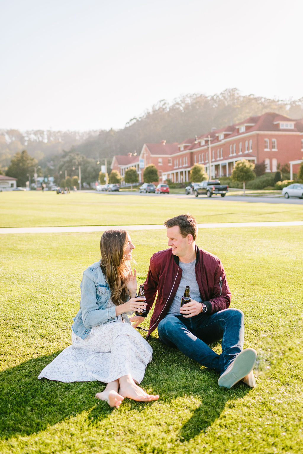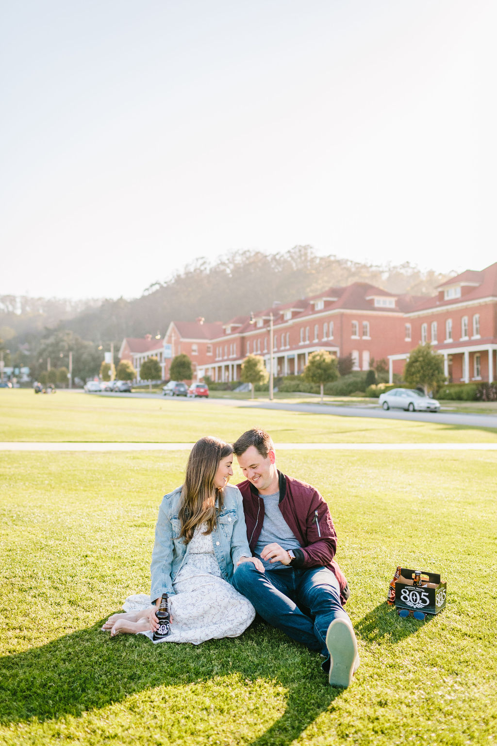Our session began at Presidio Park, a location rich in history and natural beauty. This park is where Brad popped the question to Kate, making it the perfect setting for the start of our shoot. They brought their favorite beers and had a casual picnic which embodied their relationship —intimate, warm, and effortlessly chic.