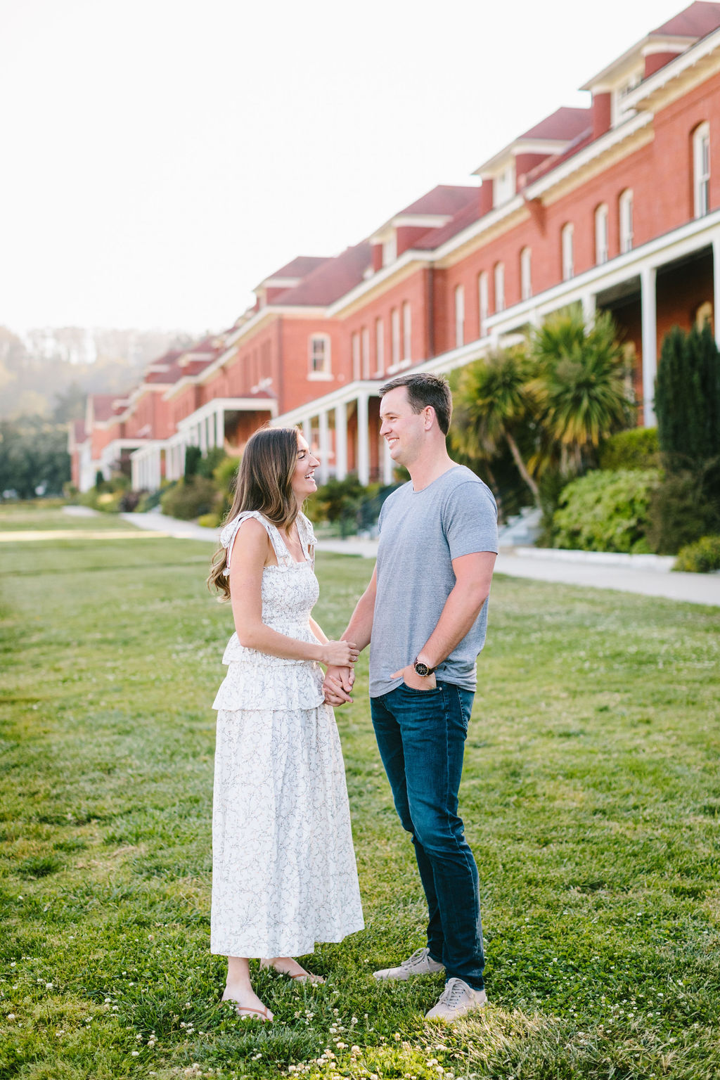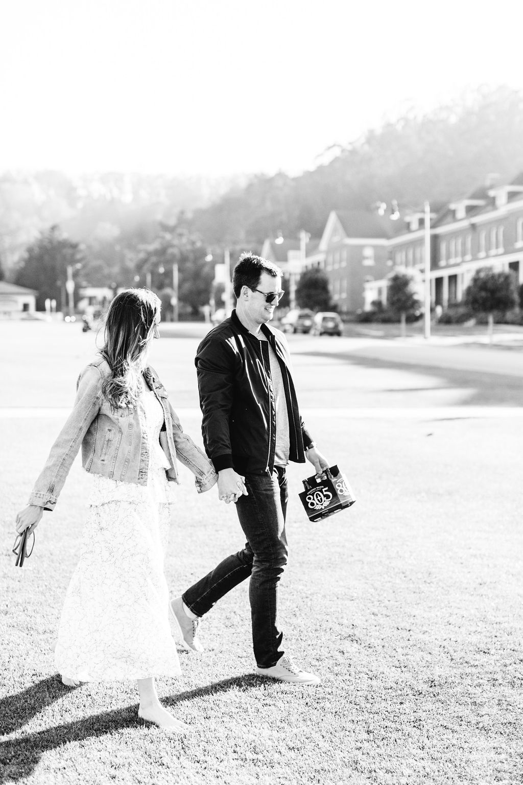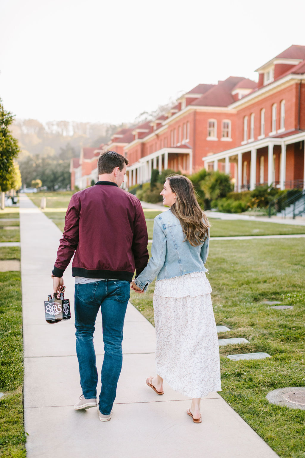 Our session began at Presidio Park, a location rich in history and natural beauty. This park is where Brad popped the question to Kate, making it the perfect setting for the start of our shoot. They brought their favorite beers and had a casual picnic which embodied their relationship —intimate, warm, and effortlessly chic.
