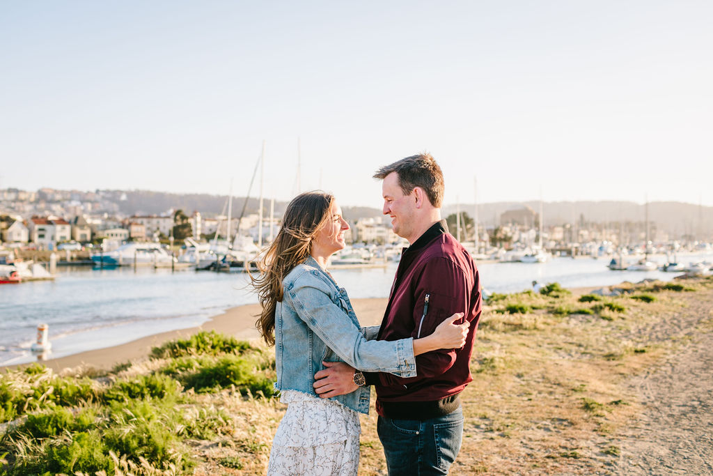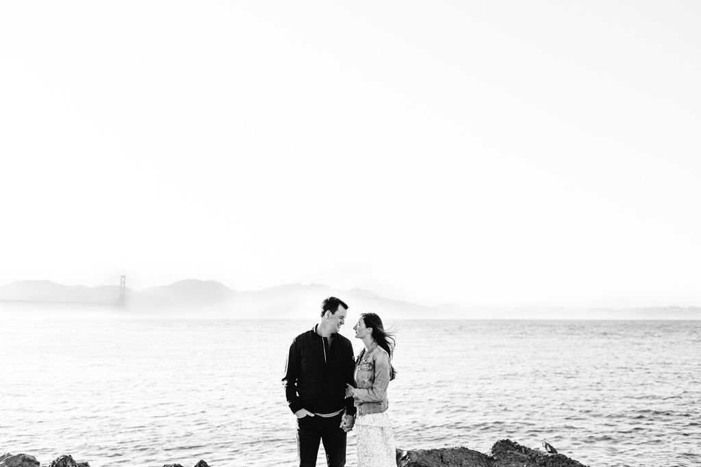 After our time at Presidio Park, we made our way to the Wave Organ, a unique and artistic installation that offers panoramic views of the Golden Gate Bridge. This spot was chosen not only for its beauty but also for its connection to the rhythms and sounds of the bay, creating a serene and romantic atmosphere for the latter part of the session.