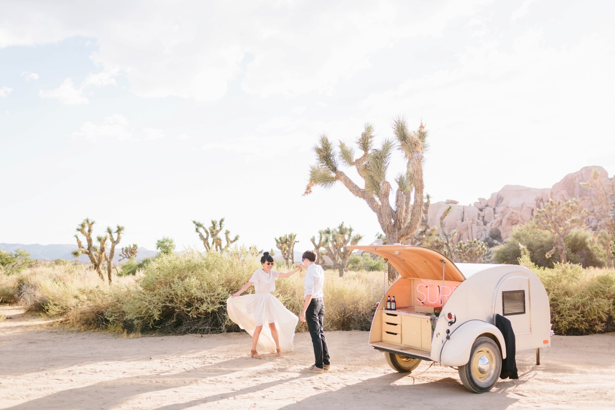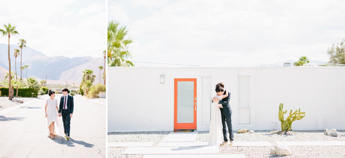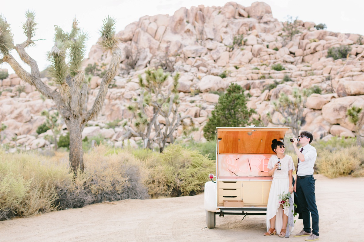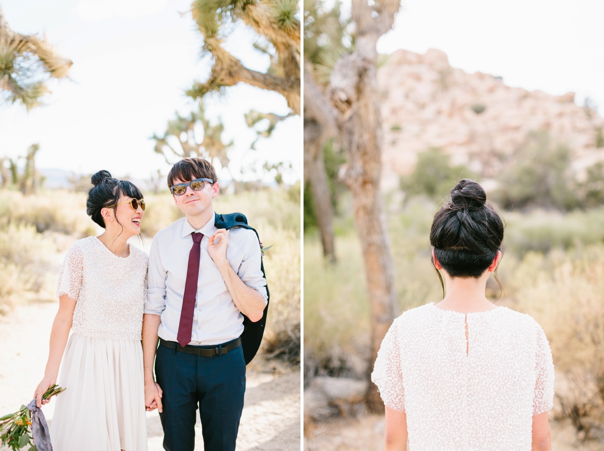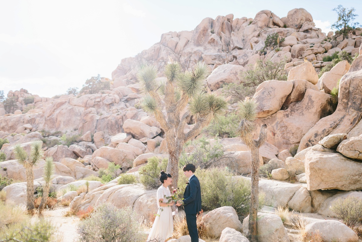 Lauren and Wes are a graphic design and architecture duo who sought an otherworldly backdrop with vignettes of modern architecture for their intimate elopement. Palm Springs and specifically Joshua Tree hit the spot, so the two escaped their home in Boston and headed westward to make their love official.
