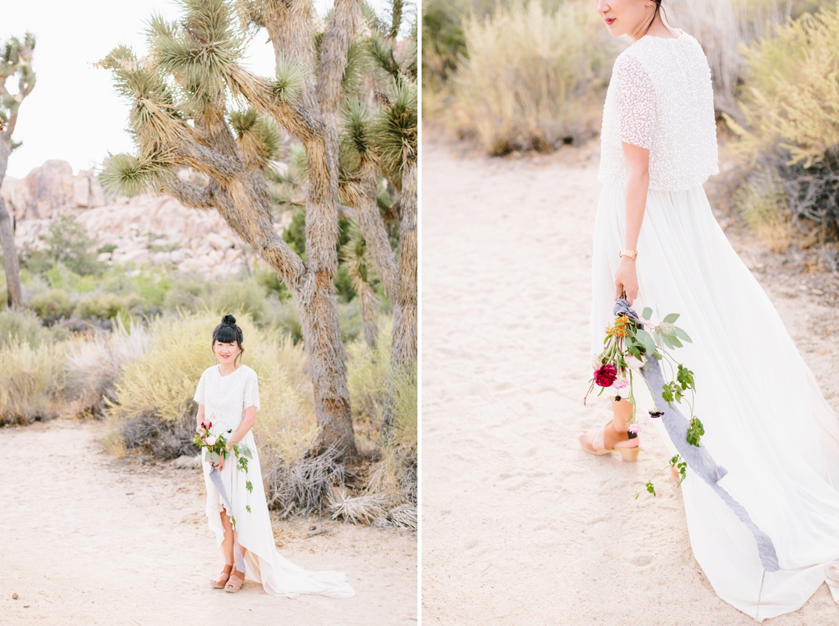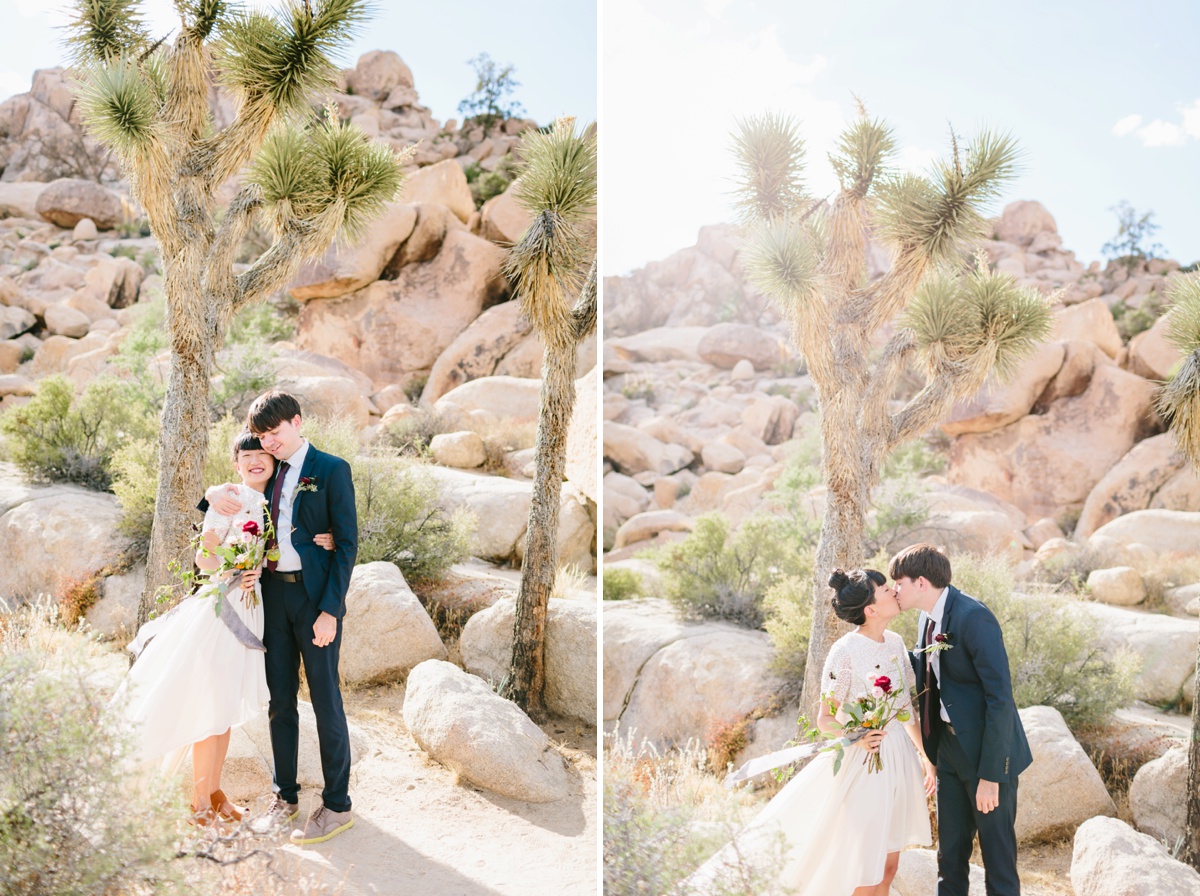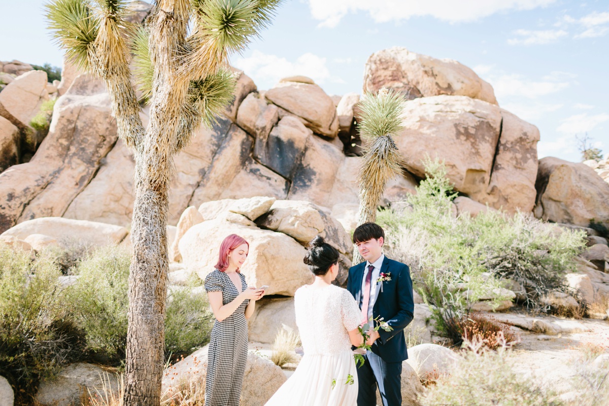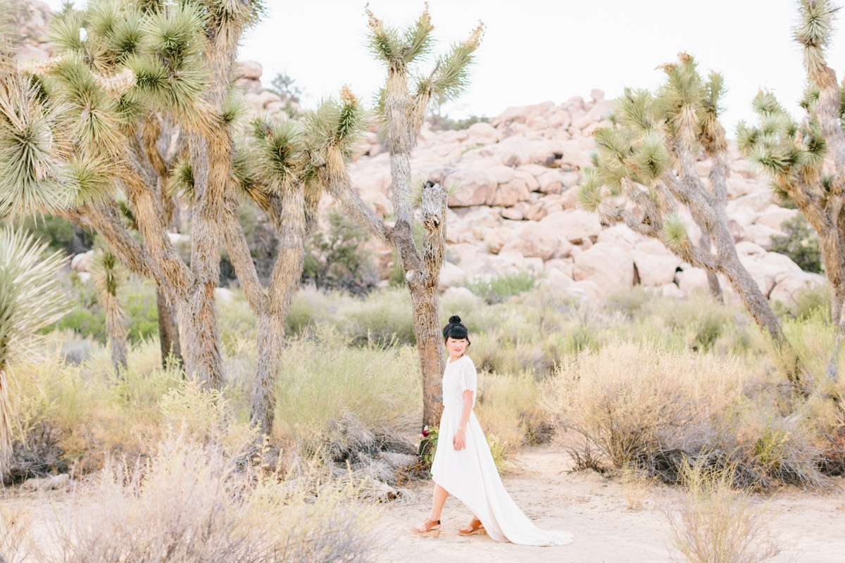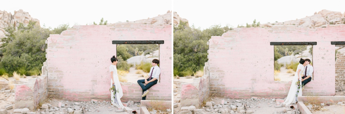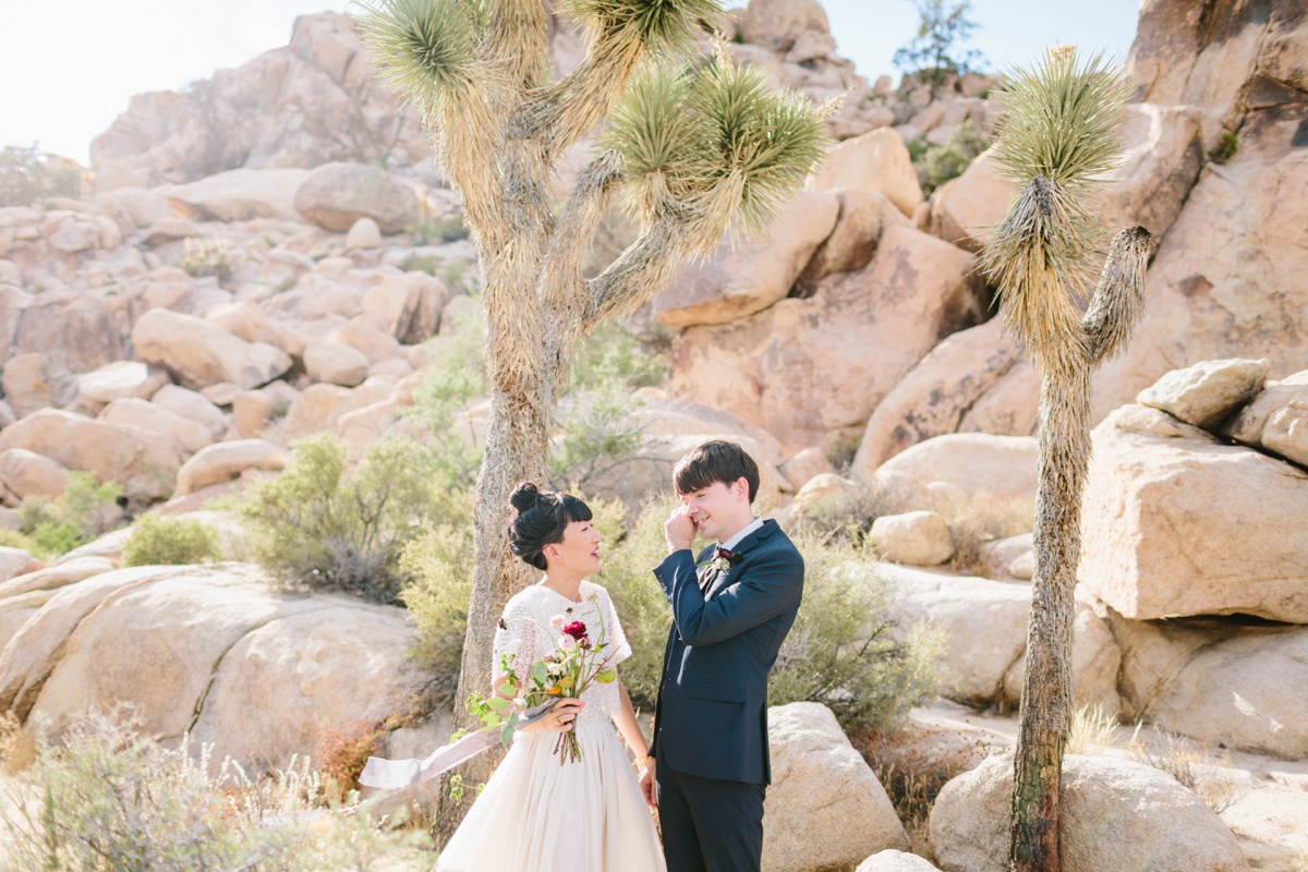 Lauren and Wes are a graphic design and architecture duo who sought an otherworldly backdrop with vignettes of modern architecture for their intimate elopement. Palm Springs and specifically Joshua Tree hit the spot, so the two escaped their home in Boston and headed westward to make their love official.