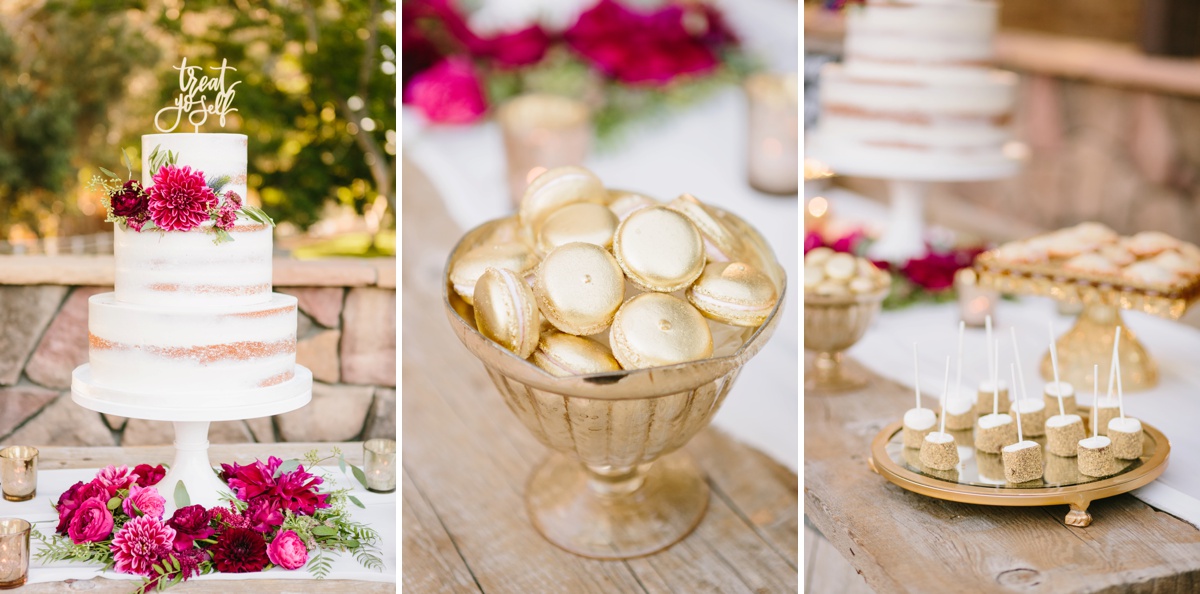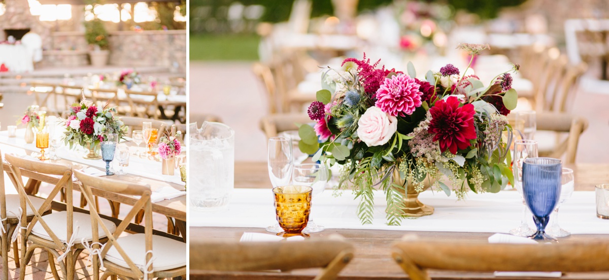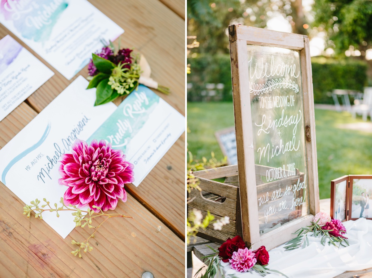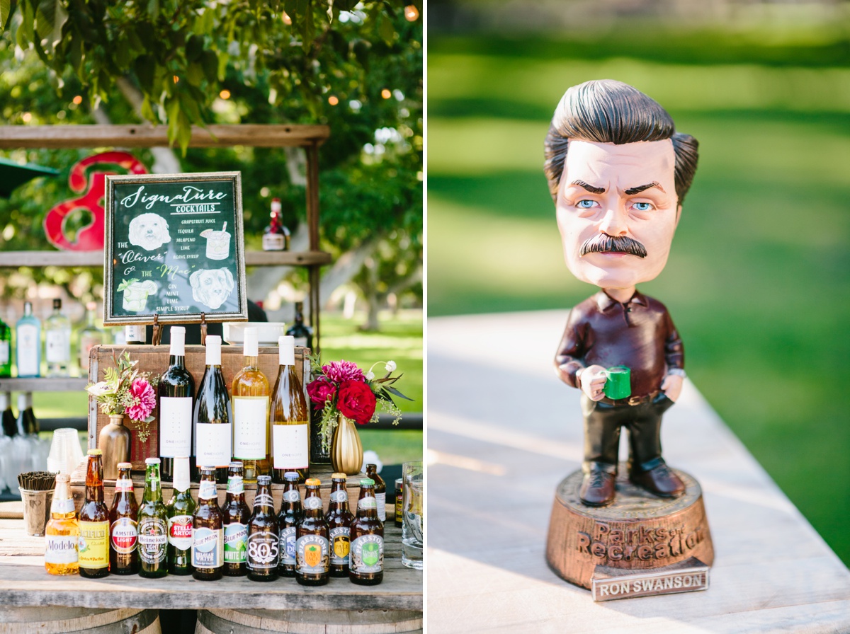 Their gorgeous October wedding took place at Walnut Grove and was designed perfectly by Lindsay and LVL Weddings & Events. They incorporated jeweled tones throughout the design from the flowers to the bridesmaid dresses to the unique vases and glasses that Lindsay collected. They also had little inside jokes and items that make Lindsay + Mike’s relationship special all around including a print of their puppies, a Ron Swanson Parks and Recreation bobblehead and their signature beverages.